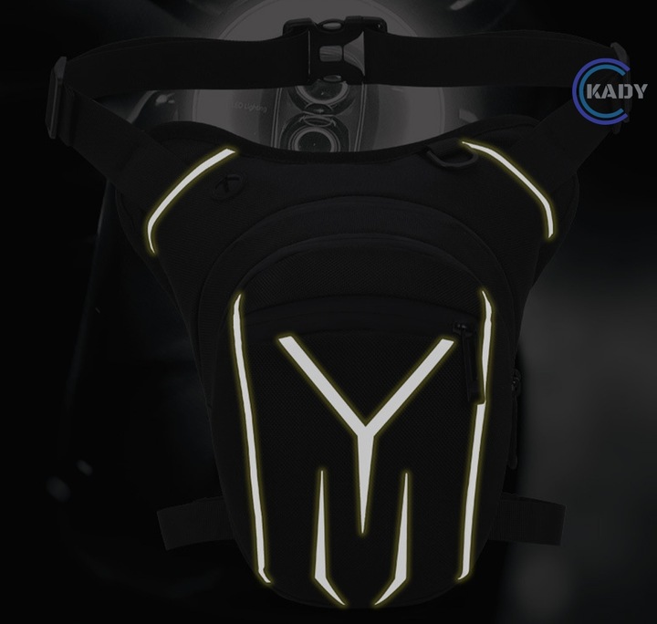 Wzór na saszetce zawiera fluorescencyjne elementy, poprawiające widoczność motocyklisty po zmroku i podczas postoju.